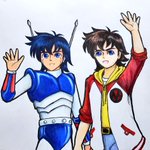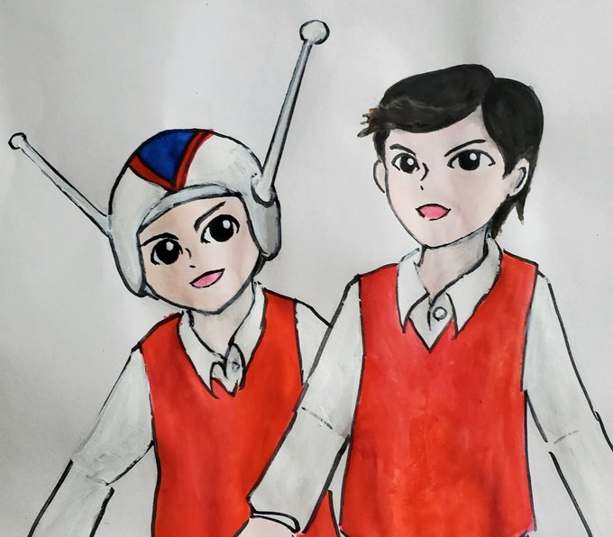 ゆげさん@hmdlc00製作の 手塚キャラ(♂)描けるかな #shindanmaker shindanmaker.com/1166249?c=1 で出てきたお題 空とぶドクターキリコ を描いてみました。最初空とぶドクターヘリと間違えたんでヘリに乗せてみた。なんか別人になっちゃった気がする