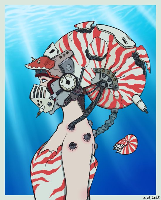 6 25 Nautilus𖦹 #イラスト #オウムガイ #GW創作クラスタフォロー祭 ←マスクオン マスクオフ→ 23/04/29 23:43