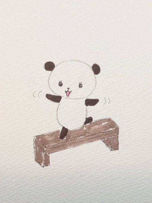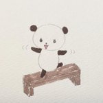 #まんが #イラスト #パンダ 角材の上に乗るパンダ