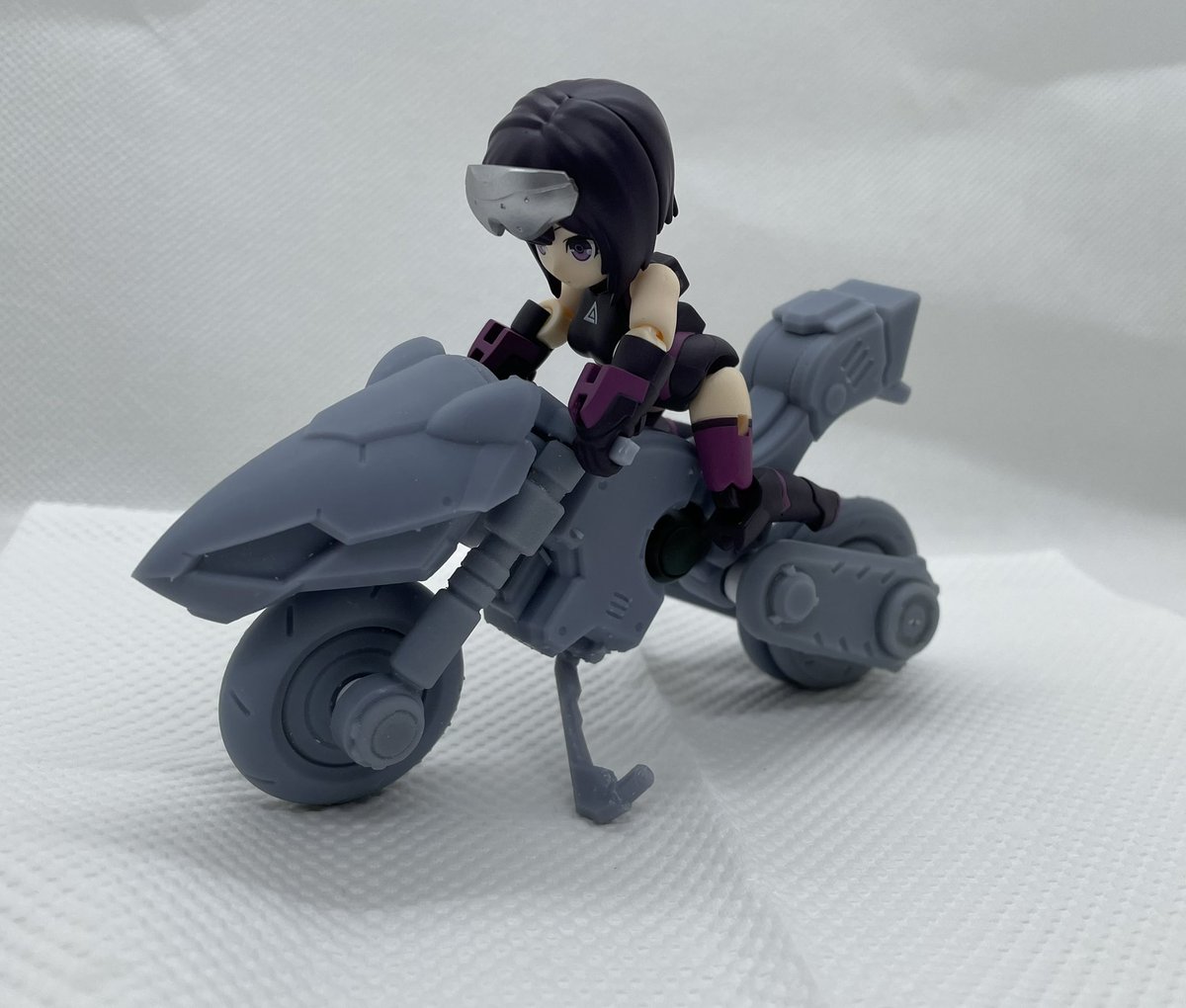 #DTA祝6周年 おめでとうございます! 次回イベントに向けてDTA用オリジナルバイクを制作中。 フロントカウル(小)にシルフィーⅡのヘッドギアをセット。 後部カバーを取り外すことでシルフィーⅡの武装が装備できます!#デスクトップアーミー