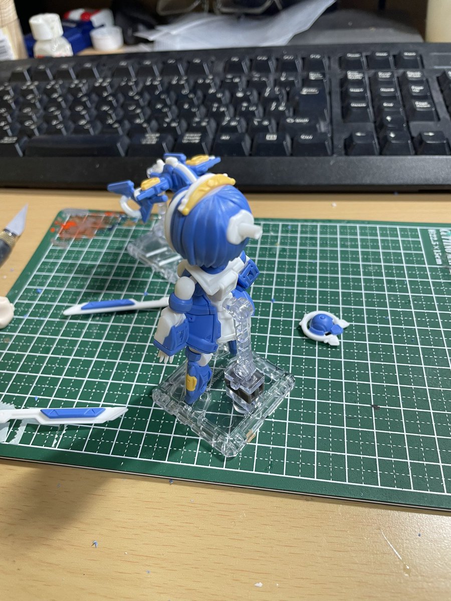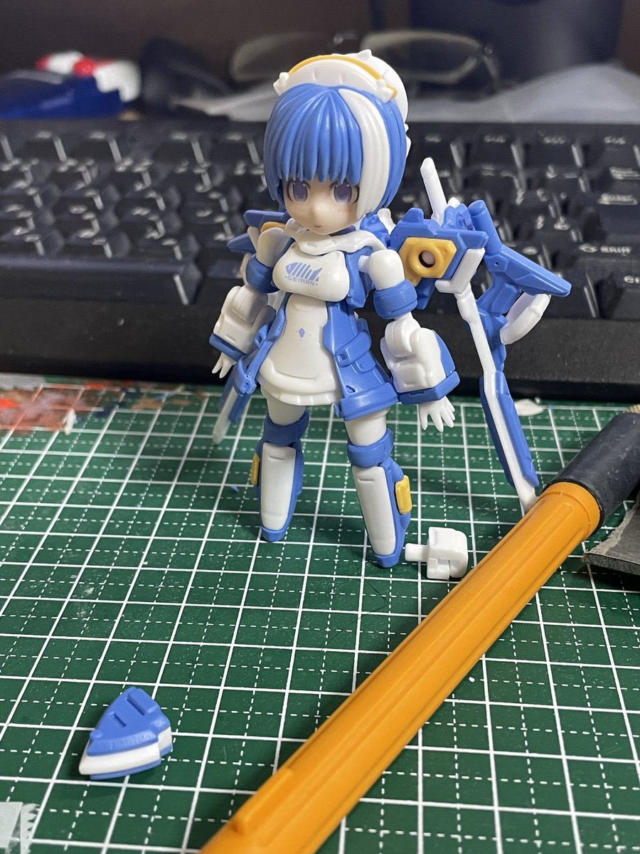 3ミリプラ棒で帽子を接続。 付属の瞳デカールとマーキングデカールを貼って、オリジナルデスクトップアーミー「セイラン」の完成! 5月3日のDTAオンリーイベント「Connected To Alliance」にて展示、頒布予定です。よろしくお願いします!#デスクトップアーミー