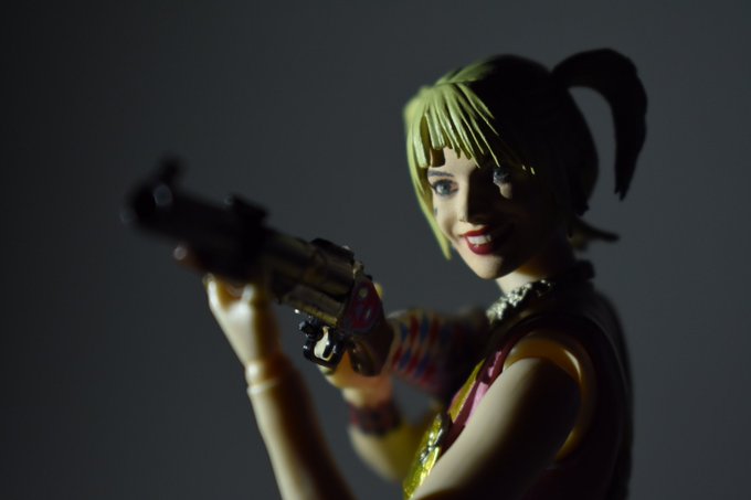 まさか #オモ写 タグ使うことになるとは… #リトルアーモリー に同じ種類のグレネードランチャーがあったので、それ組み立て、デカールシール自作して貼りました。弾込めシーンも再現できるぞ!手がそれ用に出来てないから粘着力弱めの両面テープで握ってもらった。 #HarleyQuinn #BirdsOfPrey