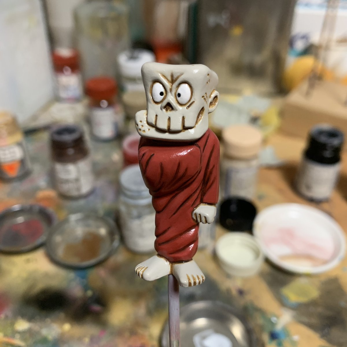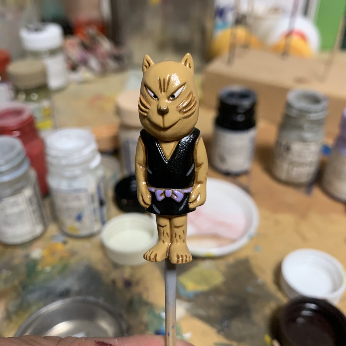 包丁に合わせてまな板のサイズを決めて スタイロフォームを切り出します。 原作見ると特にダメージも無いまな板なので角を紙ヤスリで少し丸くして完成。 目玉おやじジオラマ制作風景 #捕らわれた目玉おやじ #ワンフェス #wf2023s
