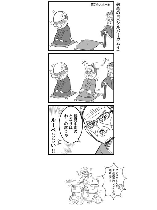 49 403 #ゴールデンカムイ版深夜の真剣お絵描き60分一本勝負 【お題】敬老の日(シルバーカムイ) 🌙「隣は渡さない」 ※1.5ドロくらい 22/09/19 22:12