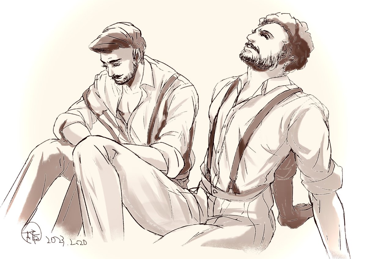 #2023年自分が選ぶ今年上半期の4枚 ほぼ RRRしか描いてない🤣もう去年からとち◯ってしまってまして🤣前からだがやはりあまり服描いてねぇ👔w し、精進します🙇wで、兄貴とか弟とかそこら辺のばっか描いてるwwwしゃあないw😂好きなんすよ〜ww