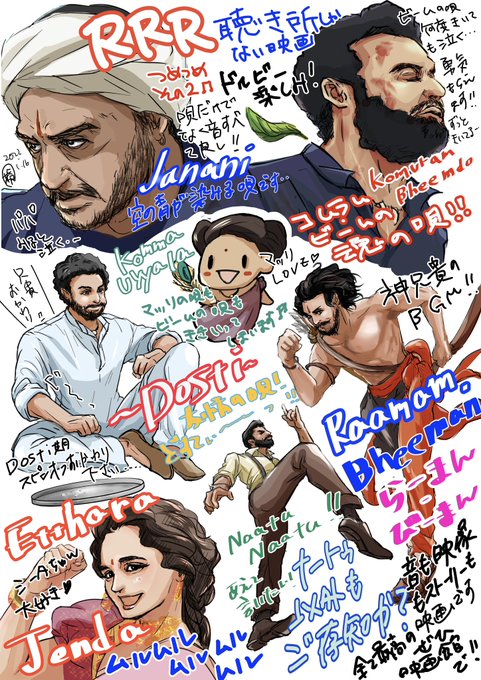 #RRRInJapan 公開100日🎊🥳🎁おめでとうございます🍾👏ありがとうございます😭✨生命力が漲り辛い事があってもRRRを劇場で観れる‼️と思うと耐えられたし沢山のdstiと繋がれた🤝日本を熱くしてくれてありがとう😊‼️公開100年迄よろしくお願いしますw #ありがとうRRR #RRRMoive 記念お絵描き纏め