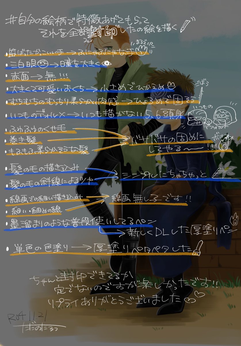 12 32 絵柄封印のタグの🤕🔮でした!!難しい…皆さんすごいなと思いながら楽しく描きました🥳🌸 リプライありがとうございました🙇♀️ twitter.com/tdnks___/statu… 22/11/21 21:11