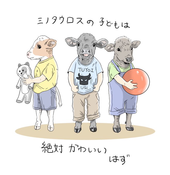 映画とか漫画とかゲームで凶悪な顔したミノタウロスが出てきても 「でも子ども(子牛)の頃は可愛かったんでしょ?」 って思うよねっていう落書き。