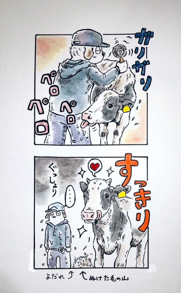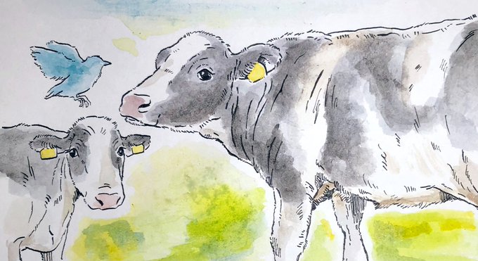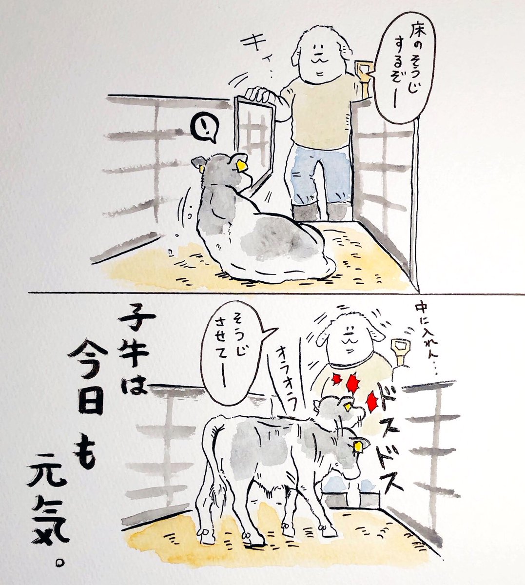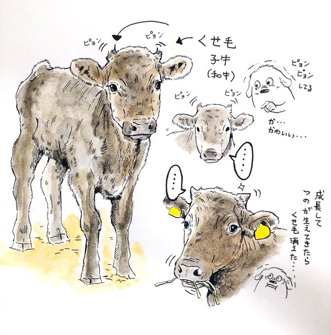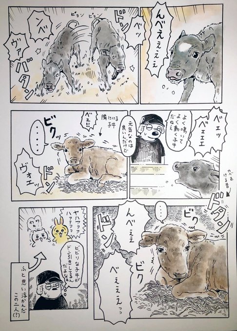 138 836 興奮子牛とパニック子牛🐮 ただの雑な絵日記です。 雑すぎたのでモノクロです。 23/08/07 11:25