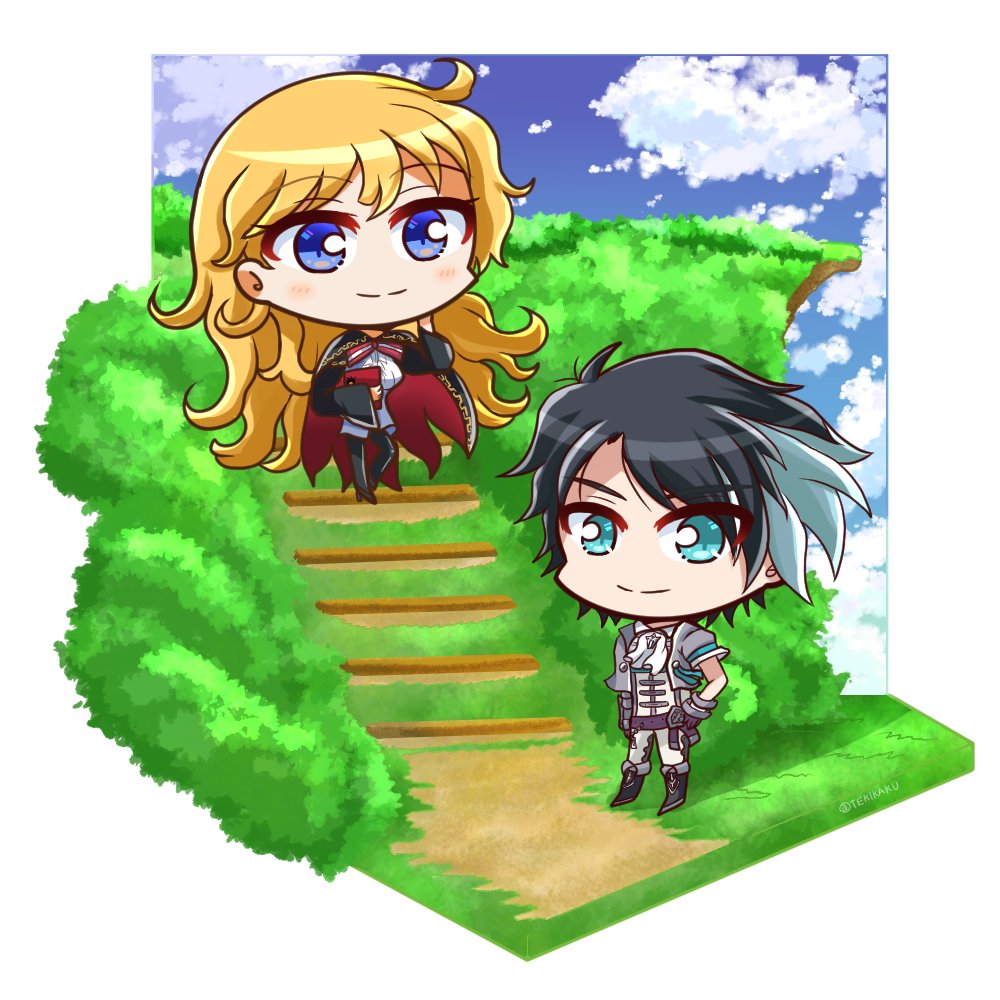 ⚠クロスオーバー マズルカとゼフィ 魔法や本背景の方が良いかなともっかい描いたφ(..) ちと暖色 ちょっとイタズラしてるルカさん #デフォルメ #イラスト #ヴィネット