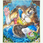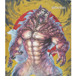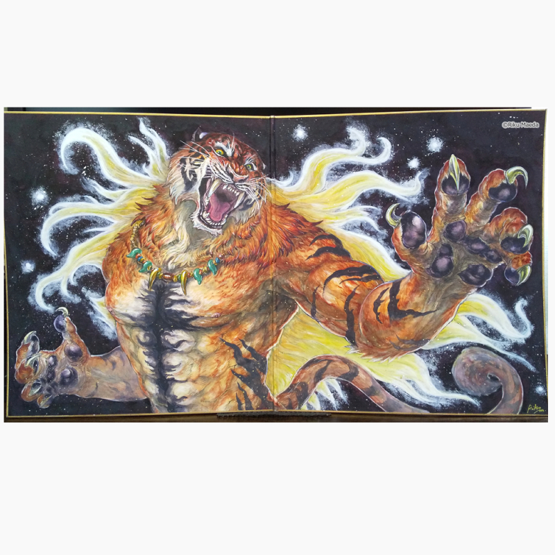 👹「夏祭り ”鬼狼" 」 青森ねぷたをイメージした作品です。モチーフとしてよく使われている鬼をテーマに、夏らしい熱紅色の狼を描きました。バックの龍とともに祭りらしい荒々しくも力強さを表現しています。 異界の住人のパワーを秘めた熱い作品になりました。 twitter.com/TERRA_rikum/st…