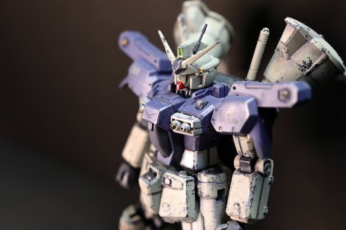 ガンダム試作1号機フルバーニアン (使用キット:HGUC1/144 ガンダム GP-01Fb) 全塗装・ウェザリング。 スポンジを使ったウェザリングに初挑戦だったもの。 肩バーニアは切り離して穴を埋めてます。 #ガンプラ #ガンプラ好きと繋がりたい #ガンプラの画像を貼るとRTされると聞いて