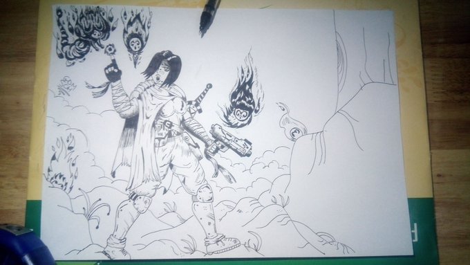 #inktober2020 pour le thème de #blade Lame en français.,,, Voici une guerrière qui se bat avec la lame et les armes a feux. Merci @jakeparker pour cette sur évent #inktober #inktoberblade #ink #inkinspiration #inkedgirl #inktoberprompts #dessin ##رسامين #رسم #رسامين_العرب