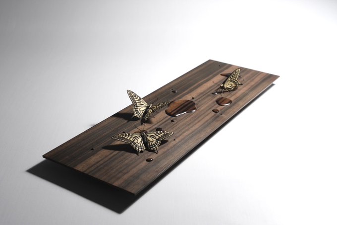 ポケモン×工芸展 出品作 「雨あがり」 ヒスイ地方のアゲハントを題材に、私が北海道で観察してきた蝶の暮らしと重ねて制作しました。 アゲハチョウの仲間の多くが"吸水をするのはオスである"事から、ちょうちょポケモンのアゲハントもオスの姿で表現しています。 #ポケモン工芸展 #pokemonxkogei