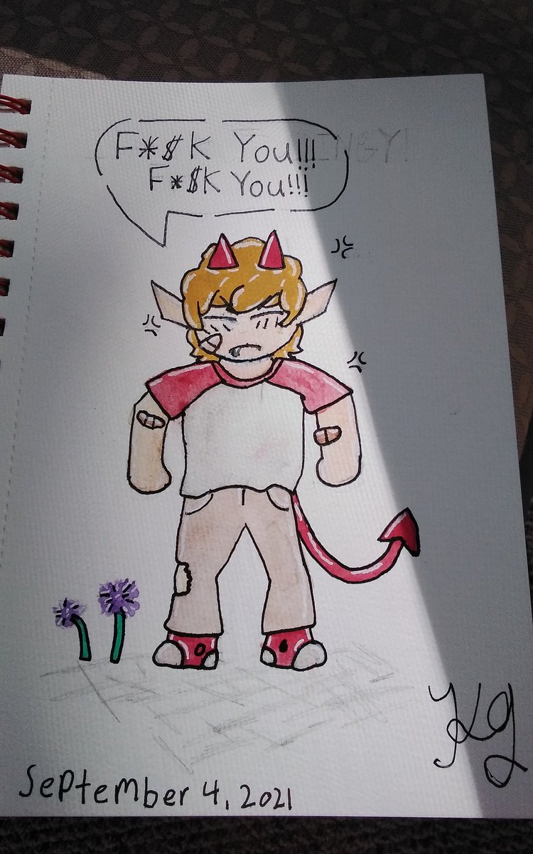 Lil ranboo happily sitting on comfert grass. He is the protector of hair-ties and scrunchies. #ranboofanart #ranboo #dsmpfanart #dsmp
