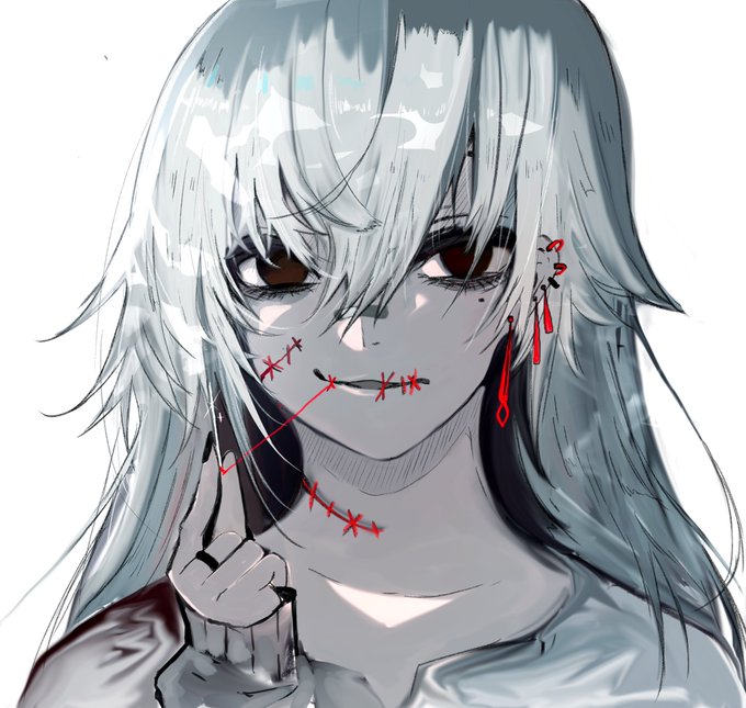 笑うの苦手だから口縫ってみたんだ 可愛い? #イラスト #フリーアイコン