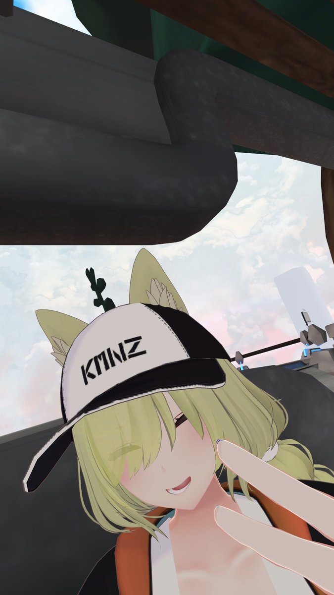 VRchatアバターの帽子をKMNCAPにしました💪 マウス手描き文字のわりに綺麗でしょ #KMNZ #kmnzart
