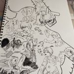 #イラスト 小学校の時に使ってたファイルを再利用して、描いた絵をアルバムみたいにしてみました!テープのりで区切って、自分的に上手くかけたやつを入れてみました!