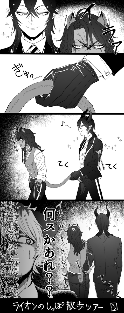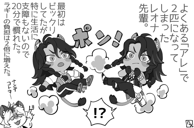 2匹になった🦁先輩が🐺君を巡ってキャットファイトする感じのジャクレオでレオレオなトンデモおバカ漫画です。 どうしてこうなったのか自分でも分からんし微妙にハレンチなので色々注意してください。 #twst_BL