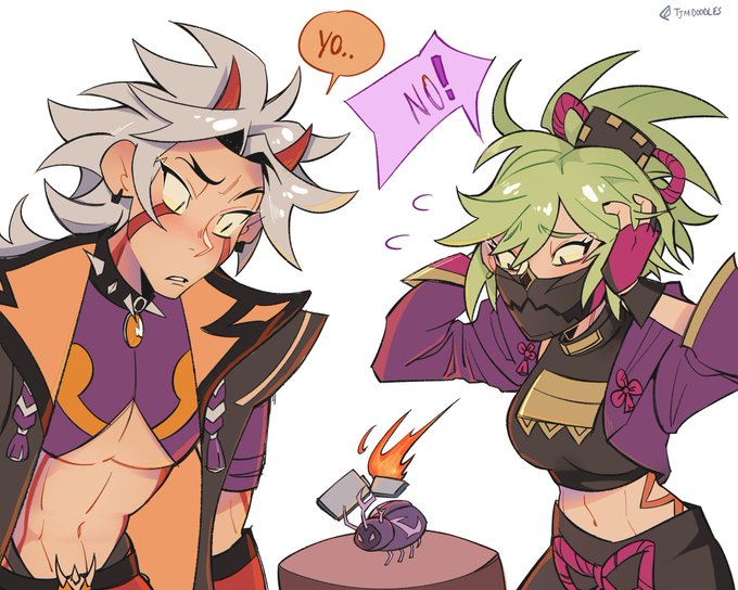 I love it when buff man and his confused goth best friend #genshinimpact #itto #KukiShinobu #genshinimpactfanart