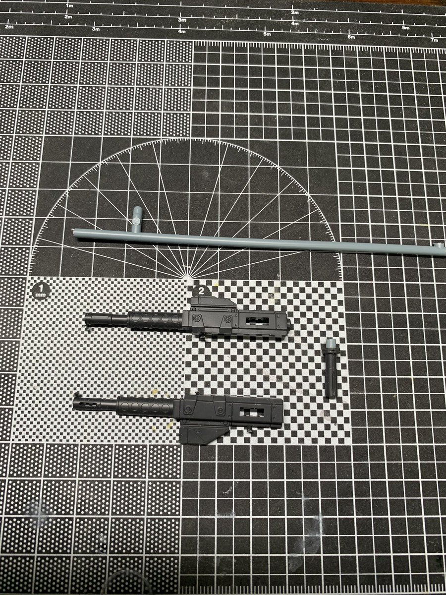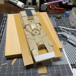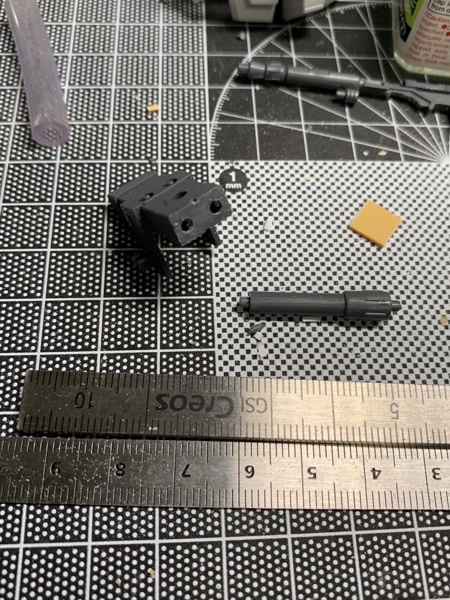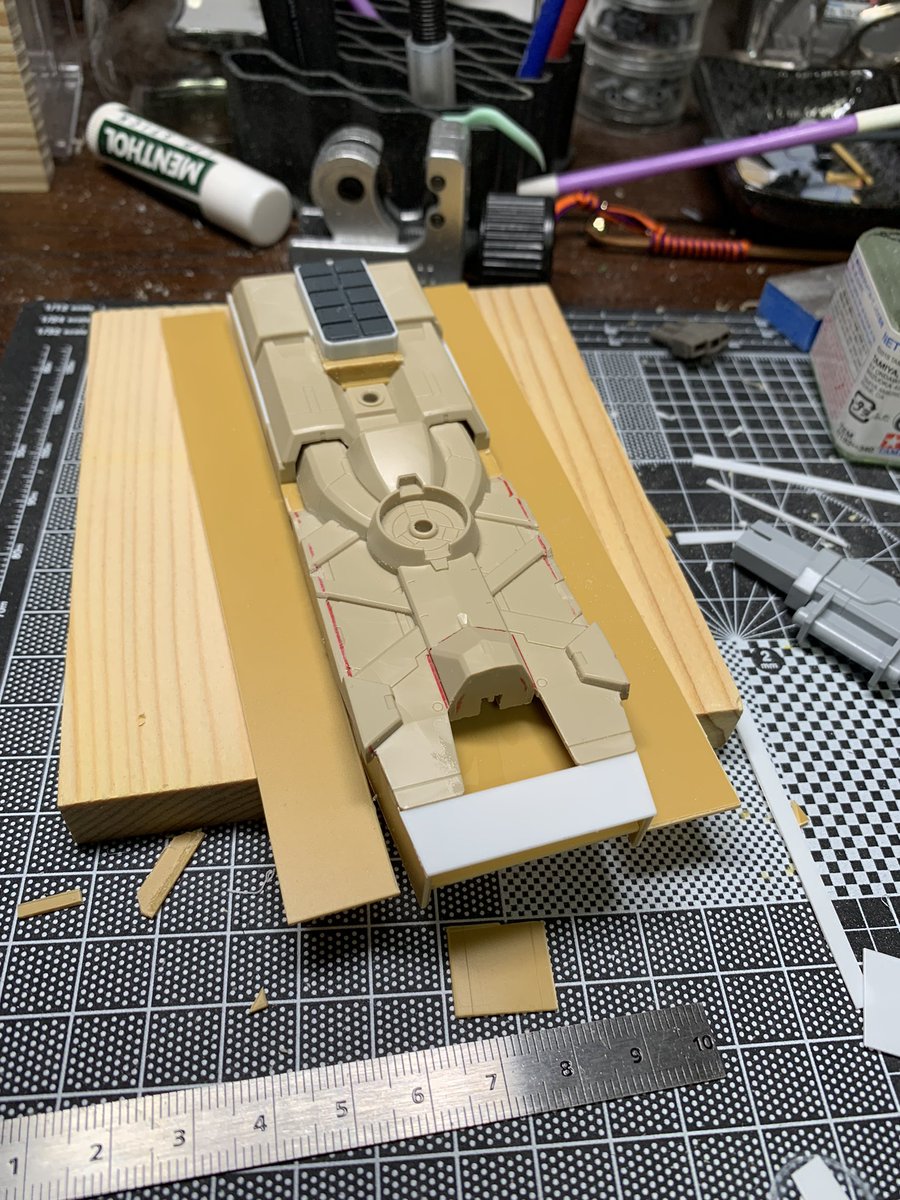 #ケイコクプラモコンペ #途中経過 #ガンプラの画像を貼るとRTされると聞いて #ガンプラ好きな人たちと繋がりたい 足は後ハメやめてダボ穴広げて外しやすくすることにしました。 BMCタガネで分割線を引いて別パーツっぽくした所で今日はここまで。