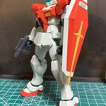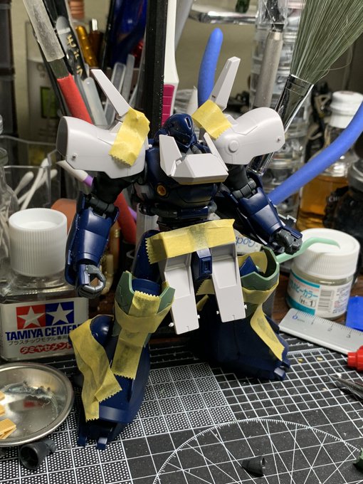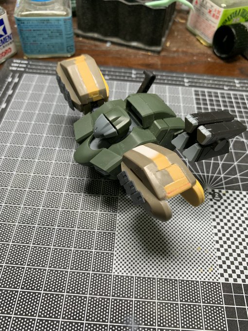 #ケイコクプラモコンペ #途中経過 #ガンプラの画像貼るとRTされると聞いて #ガンプラ好きな人たちと繋がりたい 足裏の肉抜き穴をパテで埋めてストッパー作り直して筆塗りで部分塗装をしたところで今日はここまで。