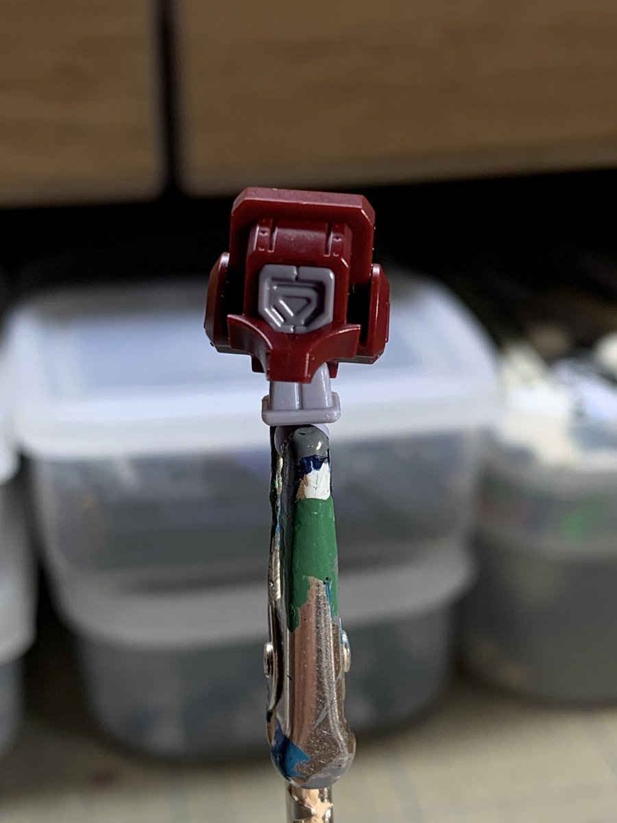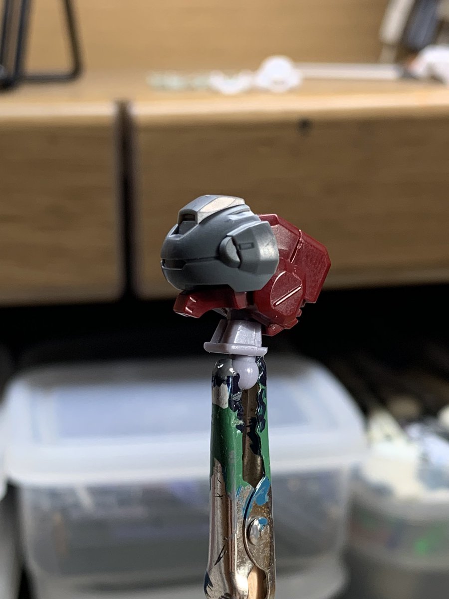 #ガンプラ #30MM 既出かも知れませんが、鉄血HG獅電の頭部バイザー穴に30MMカスタマイズヘッドのパーツがほぼ無加工で取り付け可能です。 ほんとに差し込むだけ。