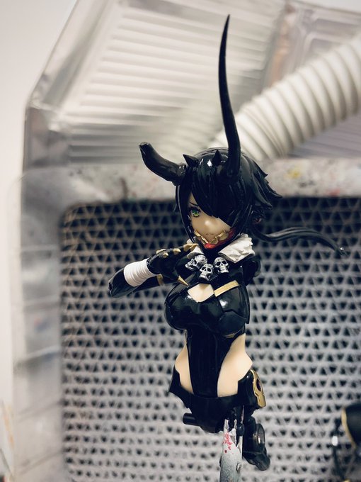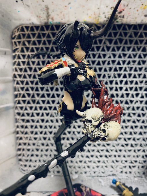 3 33 袴を赤色メインで派手目に行くので上半身はシックなブラックで! 今更ながら角を赤で塗り直すか思案中 #メガミデバイス 23/07/05 23:23