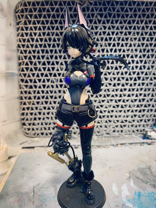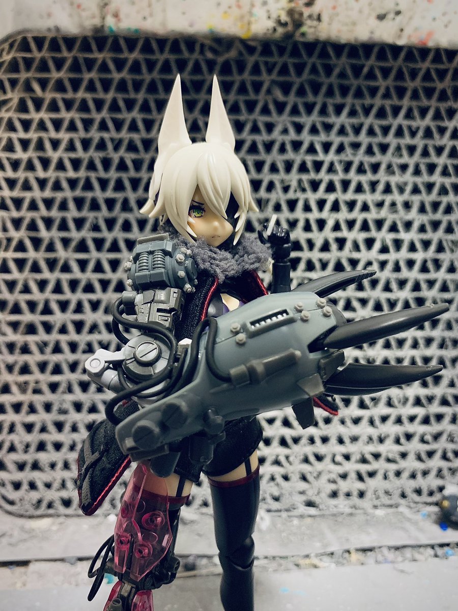 唐突にケモミミ^_^ 機械感が足りなかったので脚も替えてやった、後悔はしていない 目立つ弄りはこのくらいかな? あとはちょっとだけ触るくらいで完成だな #メガミデバイス