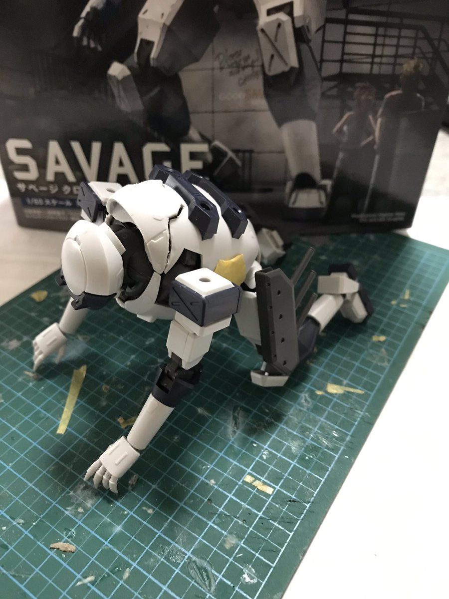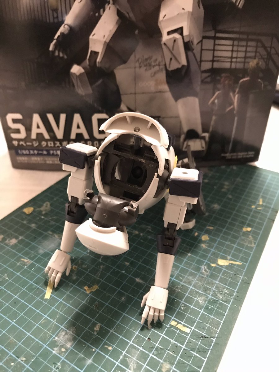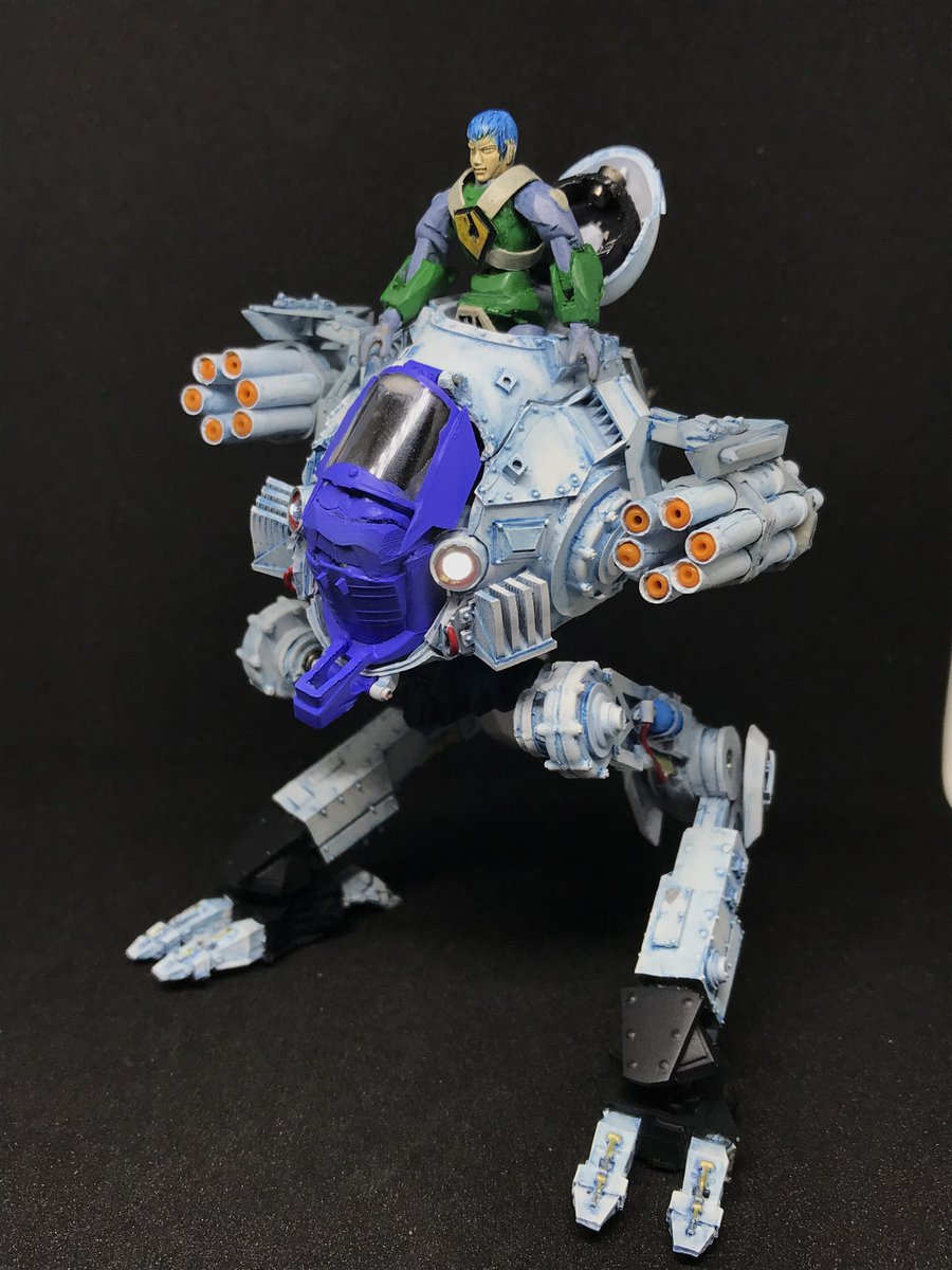 #今年作ったプラモ晒そうぜ その5 謎ガレキの二足歩行戦車 これもお友達経由で入手した品 内部構造まで造形されていたので、ピカ厨工作の他、66アクションをげずり込んだフィギュアが乗り込めるように ネジ止め式の関節で各部が可動するのでブンドドが捗りますw 続