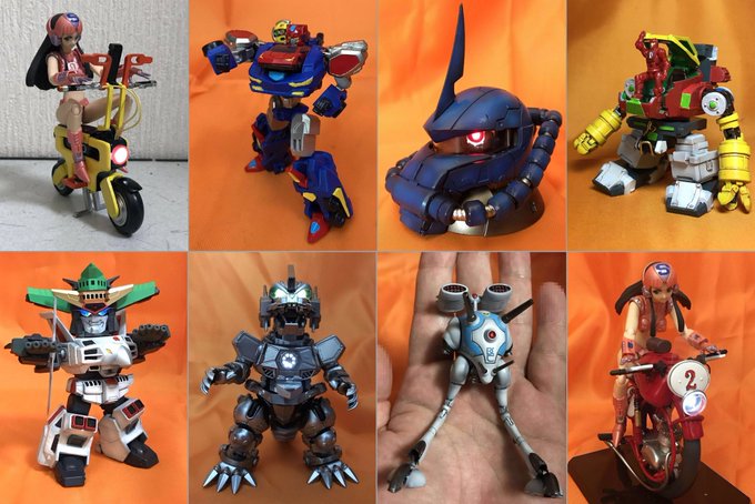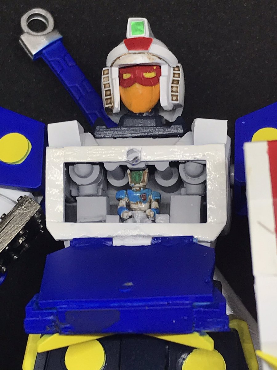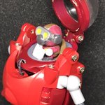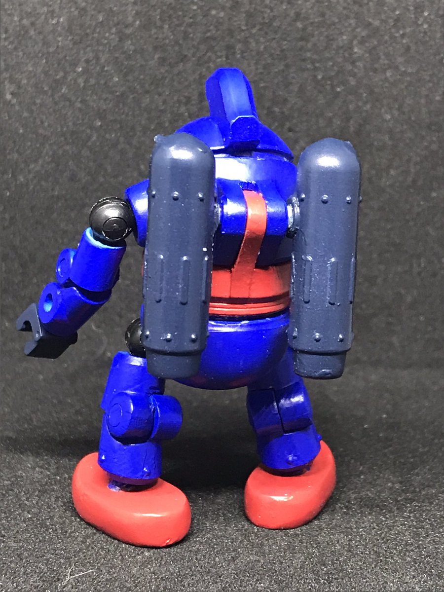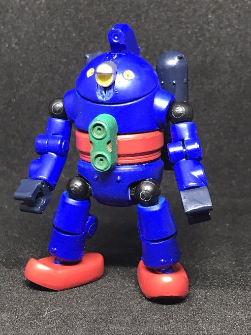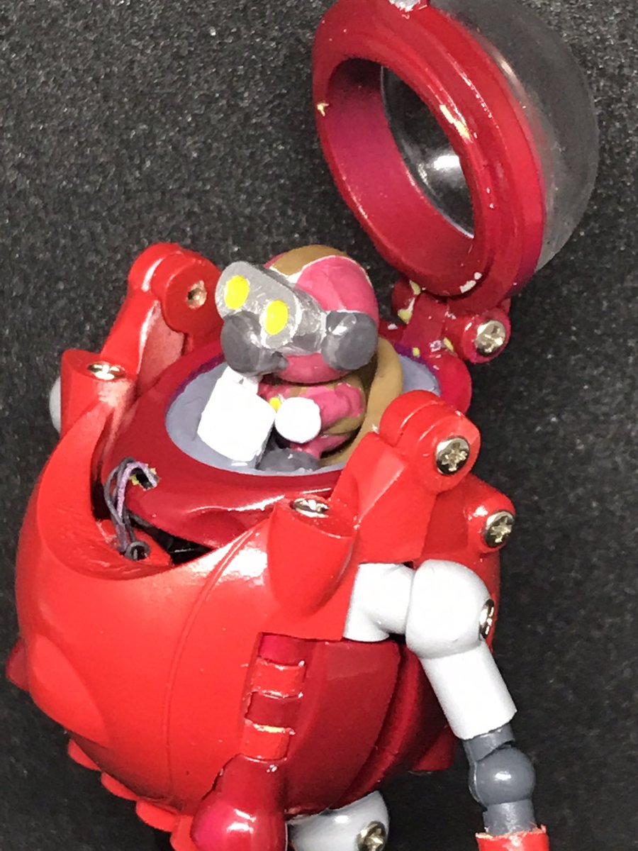 #今年作ったプラモ晒そうぜ その7 パワードスーツカプセルタイプ こうたやめた音頭保存会さん原型のガレキ 形状的に、肩を赤く塗ろうかとも思ったけど、汚し塗装が大変そうなので、某鉄人カラーで塗装 ダイアクロン隊員やマイクロウォーズのフィギュアがサイズぴったりでブンドドが捗ります