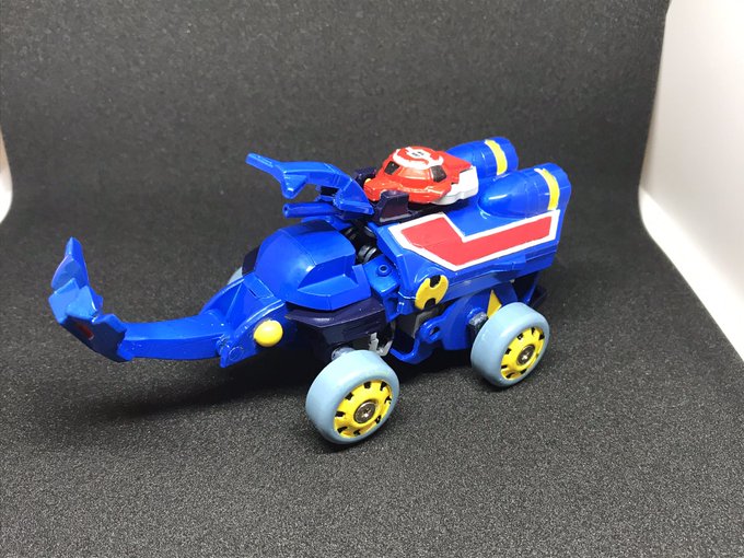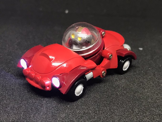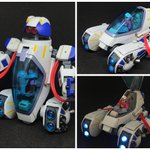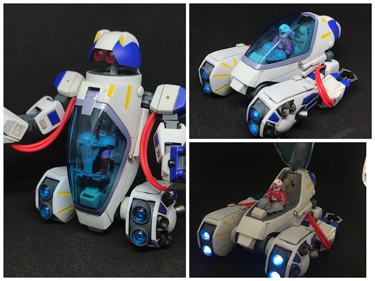 #今年作ったプラモ晒そうぜ その6 マメコロイド ナッツターボ バジルの造形魂さん原型のガレキ シンプルな構造でビークルからロボに変形するのがキュート 操縦席下にボタン電池を組み込んでヘッドライトを発光可能にしたけど、ロボ時に配線が目立つ…