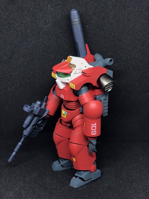 #今年作ったプラモ晒そうぜ その9 WAVE 1/20 機動歩兵 赤と白で塗り分け ガンキャノン自体がこれをモチーフにデザインされたそうなのである意味逆先祖返りという事でw バックパックに電池を仕込んで、砲口とコクピットが光るように 今年は9作でした 年々完成品が減っているので、来年は頑張りたい所存
