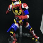 #今年作ったプラモ晒そうぜ 写真がまとめられないので一つずつ… 一つ目 フィギュアライズ スタンダード 仮面ライダークウガ アルティメットファーストライダーフォーム 「五代裕介が過去の仮面ライダーの力を借りて得た究極体」という妄想設定 色変えの他、目とベルトの発光工作を追加 続