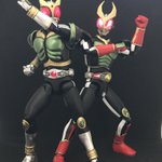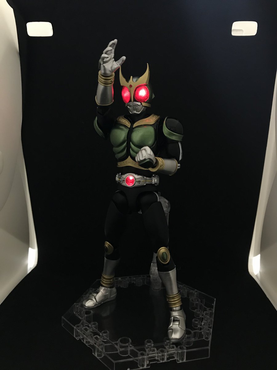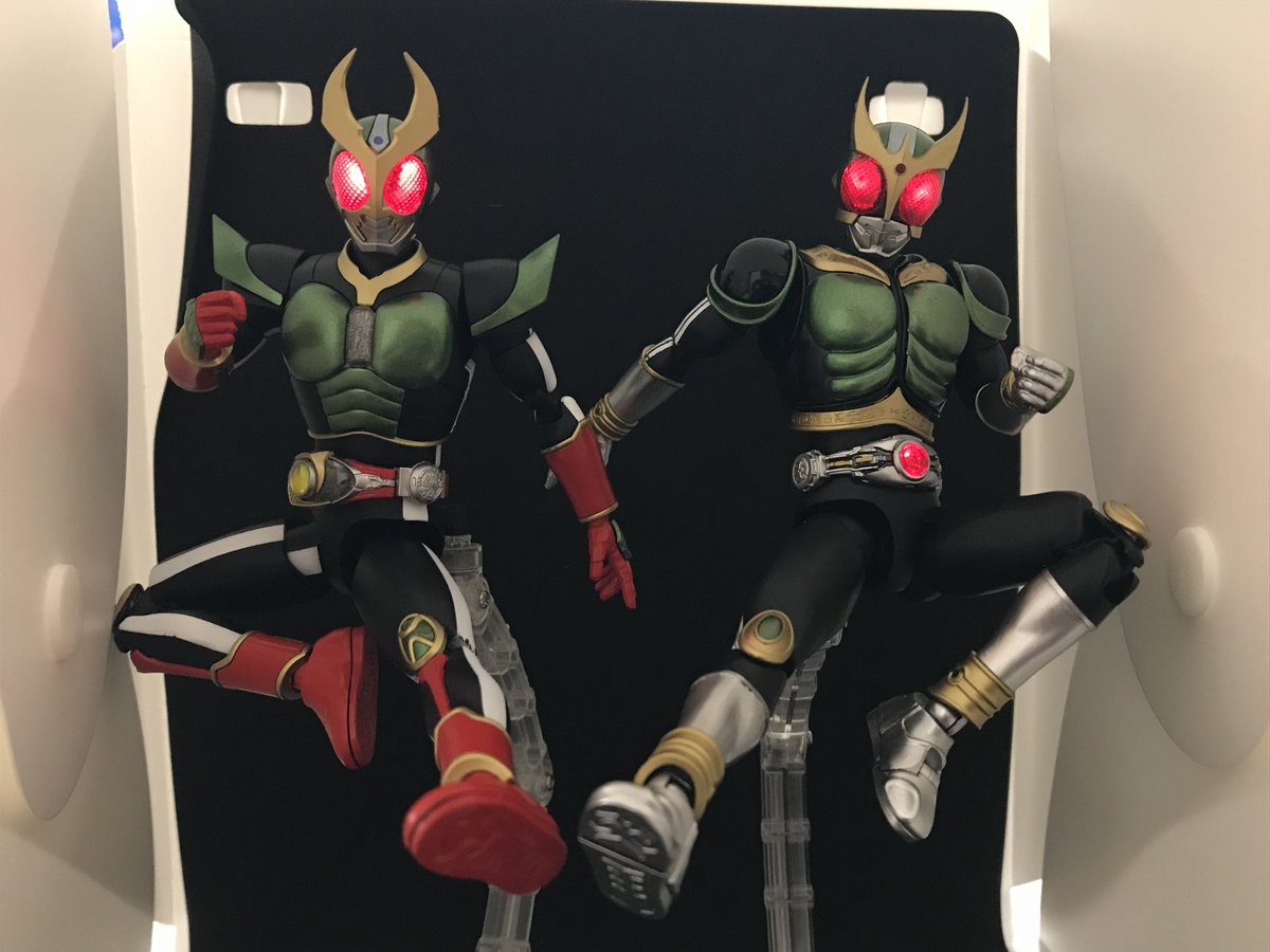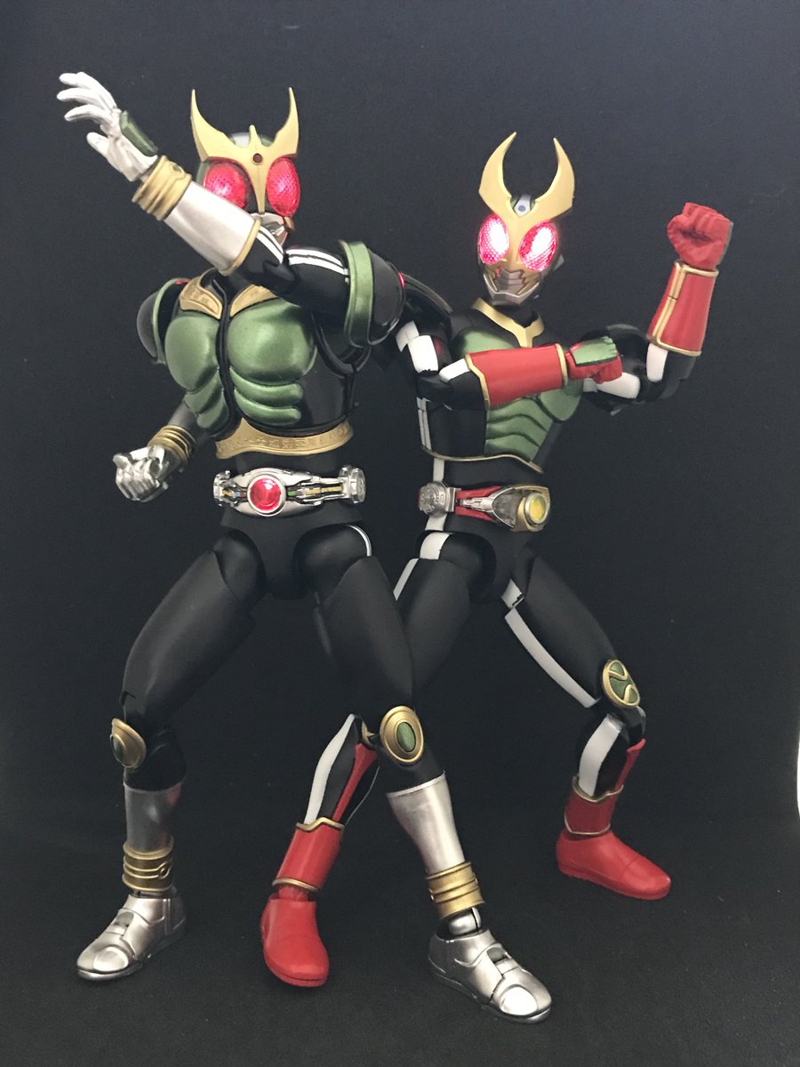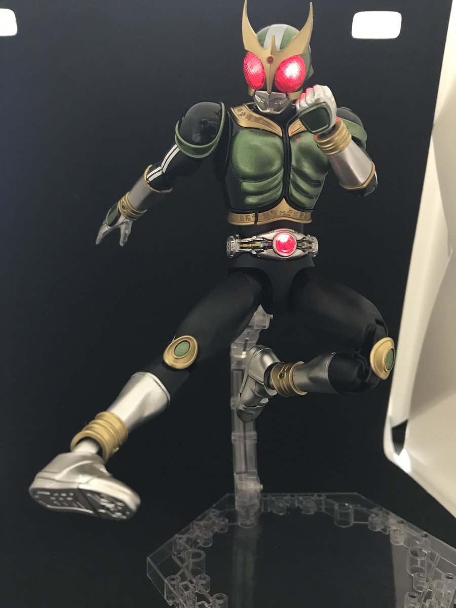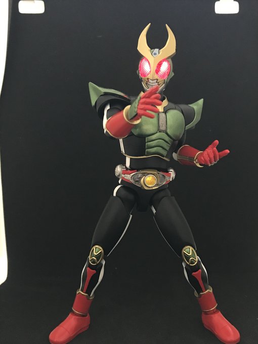 #今年作ったプラモ晒そうぜ その7 フィギュアライズ スタンダード 仮面ライダーアギト こちらも昭和の2号ライダーの力を借りたパワーアップという事で、緑と黒基調に塗り分け ダブルライダーキックが映えます 続