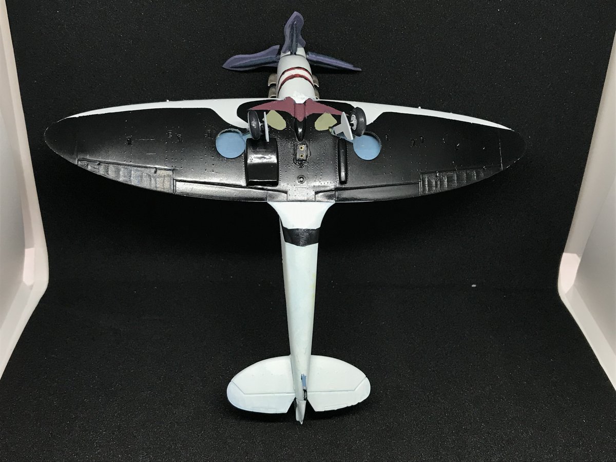#今年作ったプラモ晒そうぜ 三つ目 量産型スピットファイアシリーズ シャークマウスのノーズアートがエヴァシリーズっぽく見えたので、全体をそれっぽく塗ってみたけど、全然そんなふうに見えなかった企画倒れ品 続