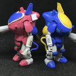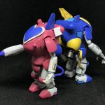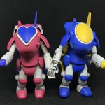 #今年作ったプラモ晒そうぜ その3&4 f-face ヒューキャスト&レイキャシール 浅井真紀さん原型のガレキ 2体並べたくて、色塗っただけの素組み 小サイズだけど、よく動いて、弄ってて楽しい