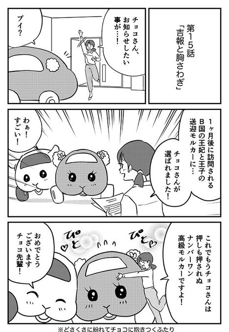 チョコちゃんの一連の漫画、タイトルを『チョコは高級モルカーになりたい』にすることにしました。 第4話「アビーのお願い」のおまけです! #モルカーファンアート #モルカー #漫画が読めるハッシュタグ