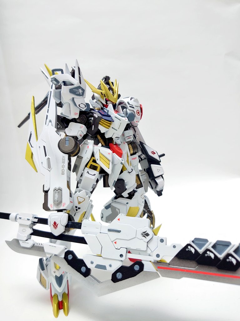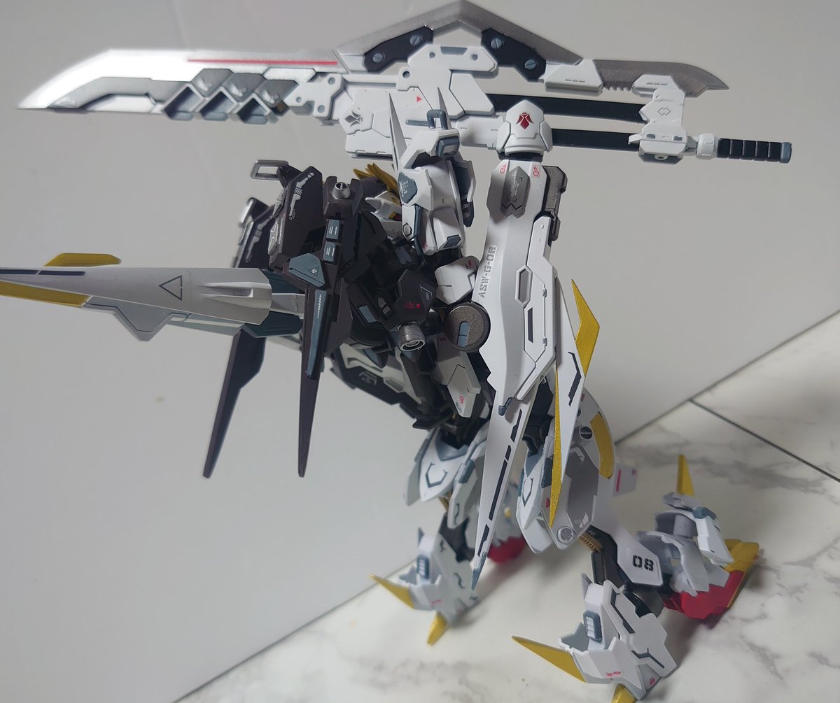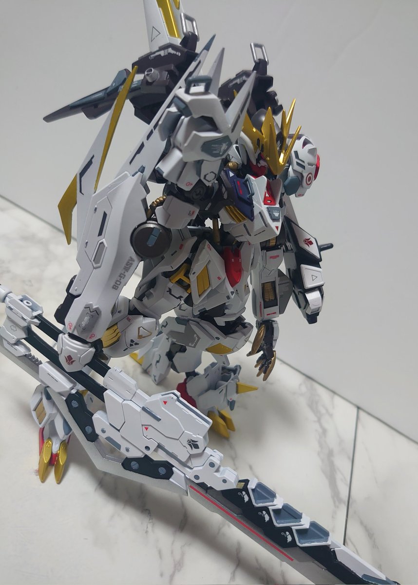 #ガンプラ #ガンプラ好きと繋がりたい #鉄血のオルフェンズ #ガンプラの画像貼るとRTされると聞いて グシオンが完成してようやく鉄華団の主力機体が揃いました‼3機並べてめちゃめちゃニヤニヤしております🤤
