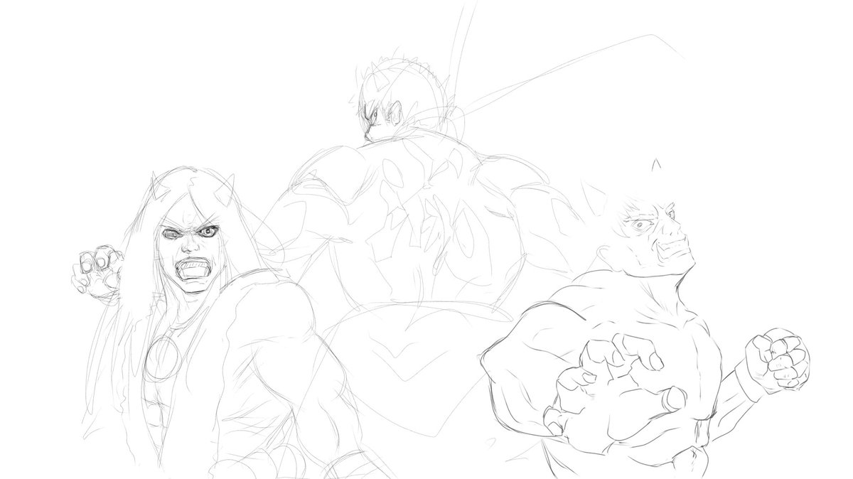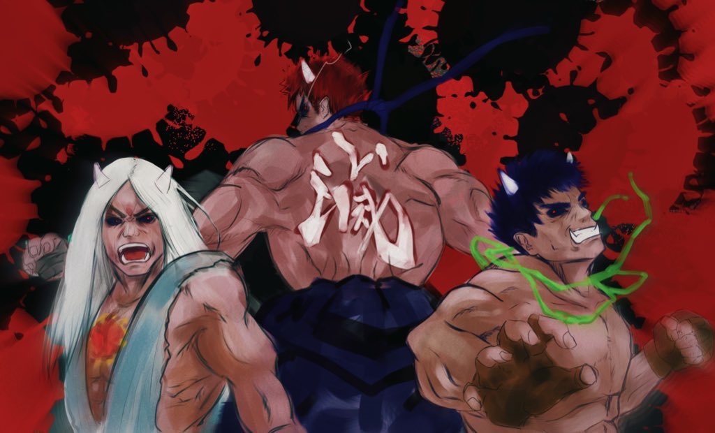 短時間で間に合わせるように描いたからすっごい雑な落書きだけど とりあえずTOPまでに描けた 死地と定めよ。👹 【@teru063 】 【@KyouheiGames 】 【@TK_hiro_sfv 】