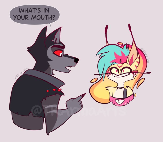 A warm, happy morning 🌄 Here, have some fluffy femme Stolitz ❤️💙 #HelluvaBoss #HelluvaBossStolitz #HelluvaBossStolas #HelluvabossBlitzo #HelluvaBossFanart