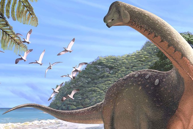 Mansourasaurus was a significant find that helped in mapping out the spread of titanosaurs. Art by Andrew McAfee of @CarnegieMNH #SauropodSunday #paleoart #dinosaurs #paleontology