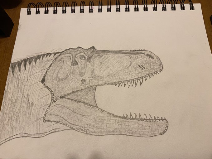 Keeping in mind I’m far from an artist, but I felt like sketching tonight. Sketch and reference used below. #dinosaurs #paleoart #TyrannosaurusRex #paleontology