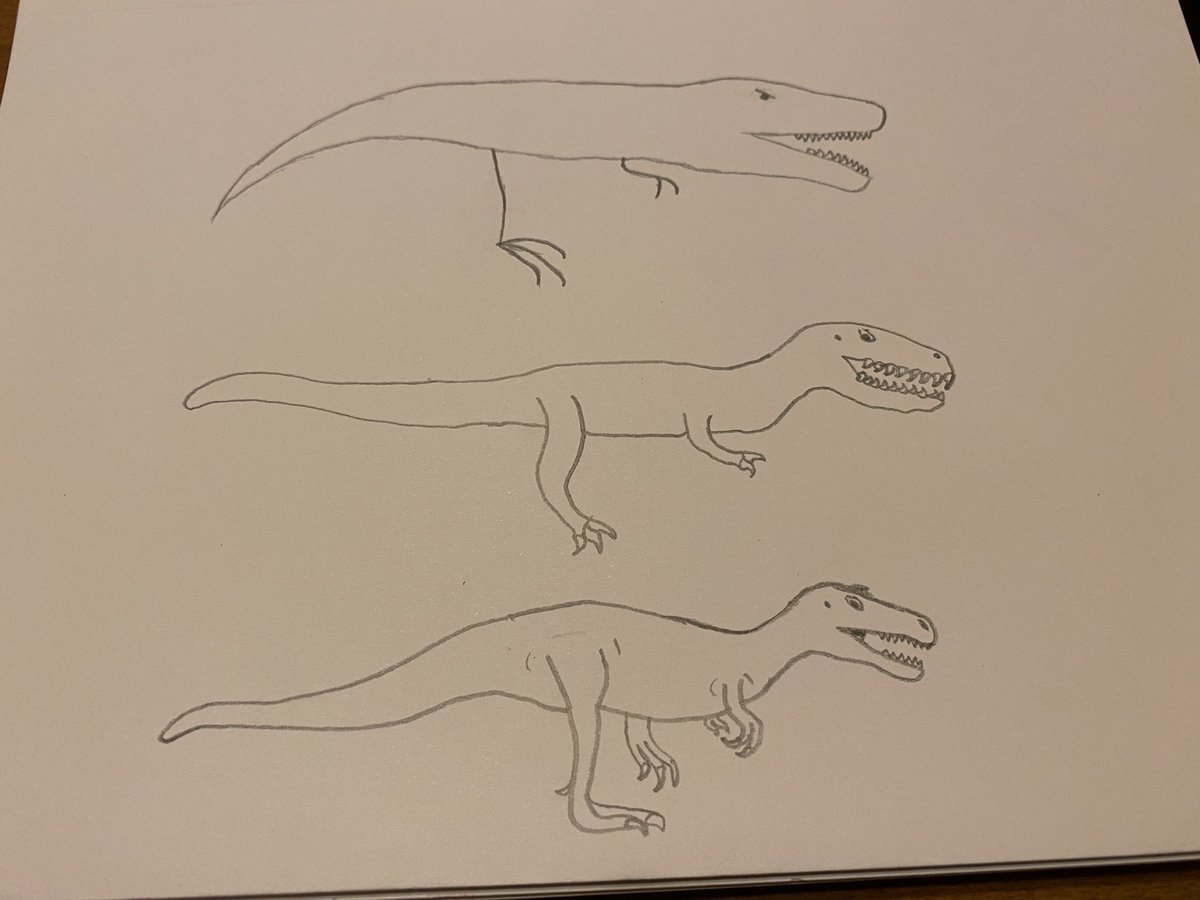 So I’ve done four sketches so far. I know they’re nothing spectacular but for me they’re pretty good. Which of my four is your favorite? Just curious. #paleoart #dinosaurs #paleontology