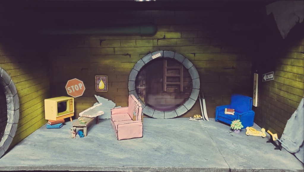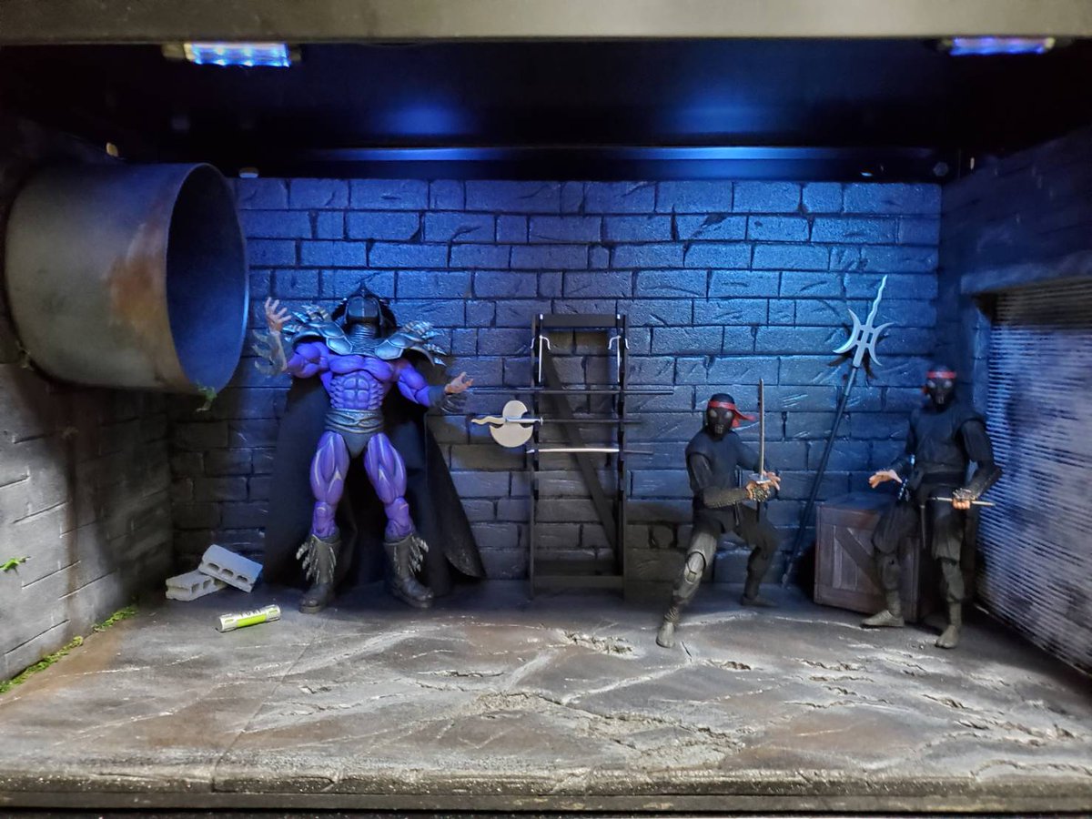 作ったジオラマの照明LEDを ピンクと青にしたら雰囲気が良くなった😄😄😄 #ジオラマ制作 #アメコミ #TMNT #オモ写 #豆魚雷
