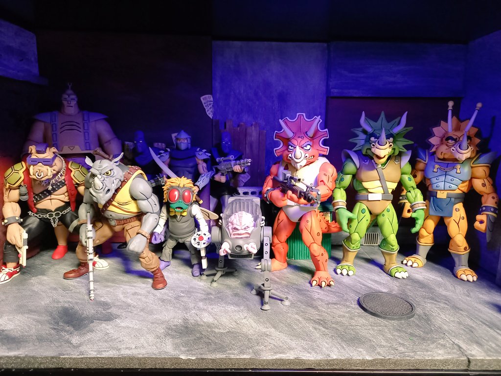 9 66 #夜のフィギュア撮影会 9月9日 お題『バトル』 愛すべきコンビバトル🆚 レオ&ラファ 🆚 ロックステディ&ビーバップ #フィギュア #ジオラマ #アメコミ #タートルズ #TMNT #neca 22/09/09 21:33