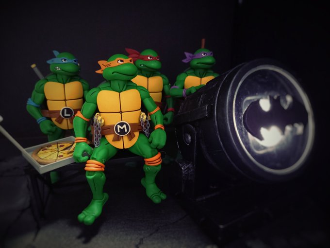#夜のフィギュア撮影会 9月12日 お題『フリー』 タートルズ🐢&バットマン🦇 #タートルズ #ジオラマ #フィギュア #アメコミ #バットマン #TMNT #NECA
