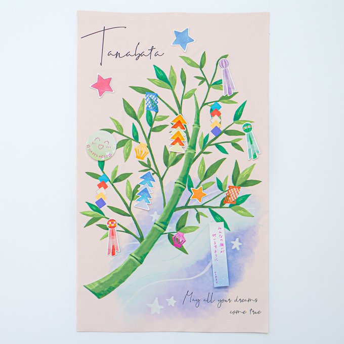 販売開始しました! まるで絵本の世界♡七夕笹タペストリー minne.com/items/32278007 #minne 本物の笹はちょっと面倒…という方にとってもオススメです💘軽い生地を使用しているので、テープで簡単に飾っていただけます✨ #minne_new #minneで販売中 #七夕 #illustration #イラスト #ハンドメイド