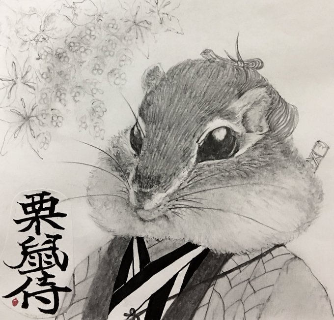 #illustrationart #illustration #illustrator #squirrel #りす #アナログイラスト #イラスト #書道アート #イラスト好きな人と繋がりたい りす侍とどんぐりの花 夏の花よりツユクサ・タマスダレ