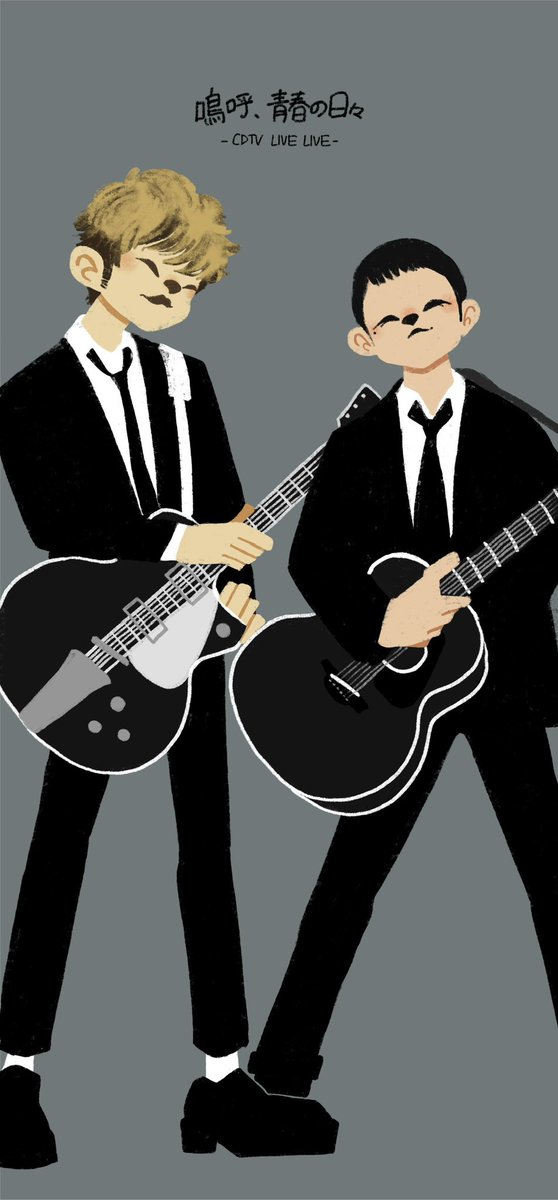 昨日あまりにも最高すぎて深夜に覚醒しながら描いたらくがき嗚呼、青春の日々… MV再現ありがとう… スーツありがとう… 金髪ありがとう… ありがとう…ありがとう… #fanart #CDTV30周年SP #CDTVライブライブ #ゆず #悠仁金髪